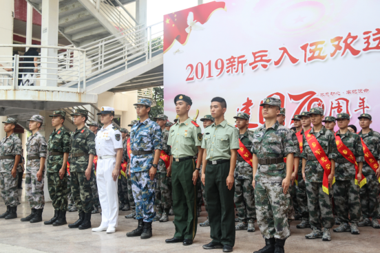9月7日上午,我校在学生活动中心广场举行2019年新兵入伍欢送仪式,热情讴歌2019年我校应征入伍的35男兵和10名待定女生。乐竞平台副校长王晖教授,南山区武装部政委朱佳春上校,各学院领导、老师、新兵家长、学生代表出席仪式和退伍兵代表出席了仪式。