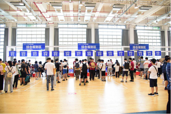值得一提的是,当天,大部分2019级新生入住粤海校区新建的宿舍楼聚翰斋、紫薇斋和红豆斋,三座共1422个房间,一共可住7110人。与宿舍连廊相隔的荔天餐厅也于新生报到当天启用,面积共8388平方米,座位数共1400个左右,供餐任务艰巨。