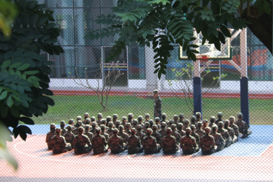 我校新生军训在粤海、丽湖两个校区同时进行,共设3个团、7个营、108个排,其中军训一团由土木与交通工程学院、数学与统计学院、物理与光电工程学院、管理学院、法学院、高等研究院、南特商学院、人文学院、建筑与城市规划学院、师范学院(教育学部)组成,在元平田径场及周边训练;军训二团由艺术学部、传播学院、经济学院、外国语学院、机电与控制工程学院、计算机与软件学院、电子与信息工程学院组成,在南体运动场和立功路训练;军训三团由医学部、材料学院、生命与海洋科学学院和化学与环境工程学院组成,在丽湖校区体育场训练。各军训团政委、副政委以及连队的指导员由我校老师担任,军事训练任务由深圳警备区派出优秀教官团队负责。