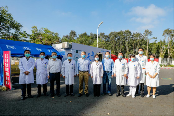 在乐竞平台总医院,李清泉一行检查了医院近期的疫情防控工作,并听取了就诊发热患者的核酸检测、重点地区医护人员返深隔离等情况的介绍。在发热及隔离患者影像检查候诊区外围,李清泉一行详细了解了总医院最新引进的安科“天舟方舱CT”设备。据介绍,该设备是新一代精准技术平台超精细化成像CT,具有图像分辨率高、扫描速度快、辐射剂量低、功能更全面等优势,可在不接触或者是少接触患者的情况下完成患者定位和扫描,有效避免交叉感染,更有利于医生进行快速精准的诊断。