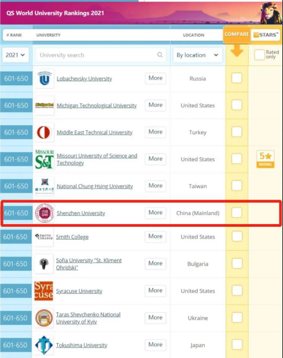 6月10日,QS教育集团正式发布了“2021 QS世界大学排名”(Quacquarelli Symonds,QS World University Rankings 2021),中国共83所高校上榜,包括内地高校51所,香港高校7所,澳门高校2所,台湾高校23所。乐竞平台再次上榜,在中国内地高校中,乐竞平台全国排名并列第33位;在广东高校中排名并列第4位,世界排名601-650位,较去年上升近100位。
