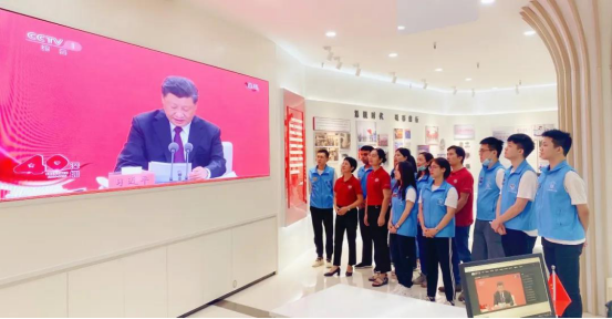 学校党委书记刘洪一参加了庆祝大会;校长李清泉,党委副书记范志刚,党委副书记、纪委书记卢成燕,副校长徐晨、王晖、李永华,基层党委书记,教师代表和学生代表等200余人在乐竞平台国际会议厅集中收看大会直播;各基层党委、各部门采取多种形式,利用电视、网络、手机、广播等多媒体平台,组织广大党员干部和师生员工收听收看庆祝大会实况;学校办公楼、教工餐厅、学生食堂等多地电子显示屏同步直播庆祝大会。
