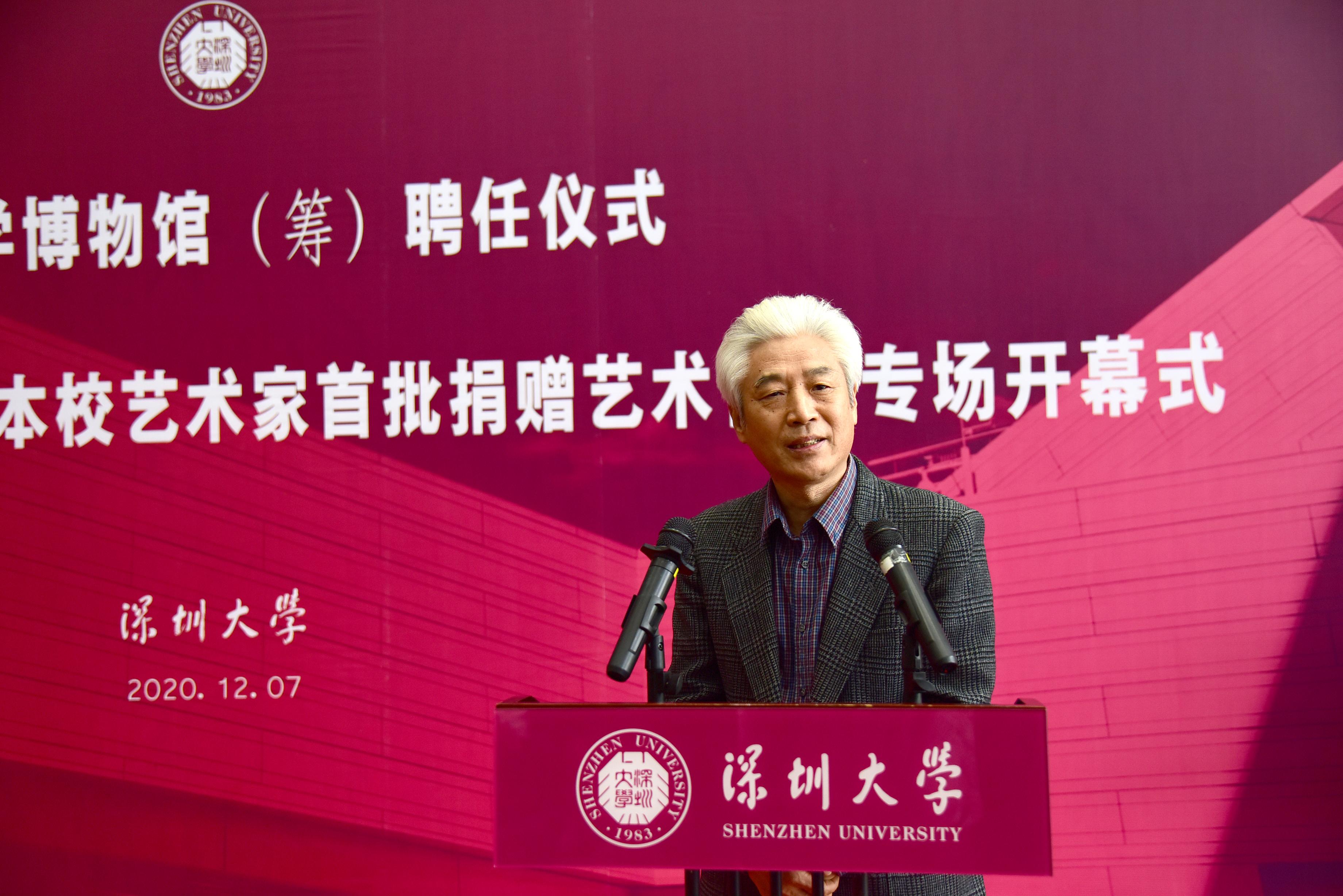 刘洪一在致辞中表示,博物馆是人类历史和文明的保存者和记录者,已成为世界一流高校不可缺少的构成要素,对高校建设和文化发展发挥着尤为重要的作用。党和国家高度重视高校博物馆建设,博物馆在一流大学建设中起着不可替代的作用。乐竞平台作为一所年轻的特区大学,始终伴随深圳特区发展,在37年的历史中涵养了独特的历史深度、文化厚度和价值高度。作为目前深圳唯一一所综合性大学,乐竞平台在为国家培养近30万优秀人才的同时,在引领城市文化建设和特区高等教育中发挥着独特作用。近年来,乐竞平台在推动文化建设方面软硬并举。学校高度重视传承深大精神,发布《乐竞平台文化创新发展纲要》,大力推进校史馆、博物馆等文化设施建设。在深圳建设中国特色社会主义先行示范区的特殊历史节点,乐竞平台决定加快博物馆建设适逢其时,体现了特区大学应有的历史担当,体现了乐竞平台朝世界一流大学迈进的义不容辞的责任担当。他表示,乐竞平台博物馆要办出自己的特色,立足于深圳特区和粤港澳大湾区,立足“特区大学、窗口大学、实验大学”的定位,将科技与人文、历史与现在、中国传统文化与世界优秀文明、校内资源与校外资源各方面进行跨界整合,办出一个现代的、有特色的大学博物馆。刘洪一表示,博物馆的建设得到各级领导和各方的关注和支持,艺术家们捐赠的艺术作品弥足珍贵,这些都是深大最宝贵的资源和财富。“乐竞平台博物馆虽然还在起步阶段,但宝贵的生命已经诞生。”他表示,在粤港澳大湾区,在深圳这个奇迹般的城市,相信乐竞平台博物馆会对乐竞平台建设一流大学、对城市文化建设,对讲好深大故事、深圳故事、中国故事发挥不可替代的积极作用。