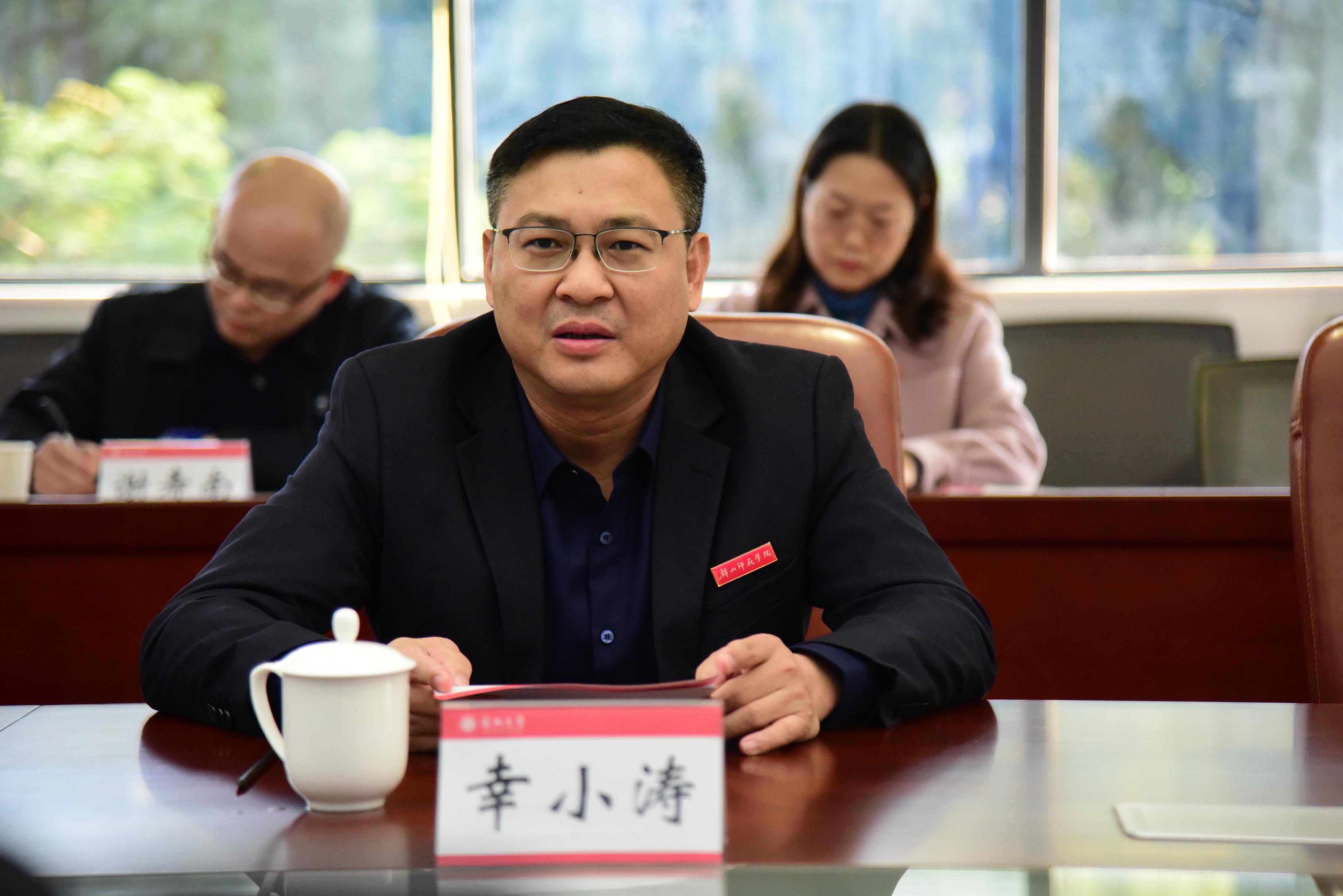 12月4日下午,韩山师范学院(以下简称“韩山师院”)党委书记幸小涛、校长陈树思一行来访我校。我校党委书记刘洪一、党委副书记范志刚、副校长徐晨接待来宾一行,双方在汇元楼举行座谈。