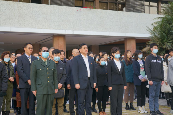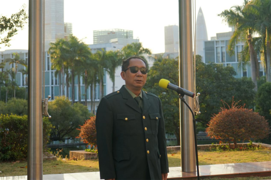 上午7:30,天人广场肃穆庄严,在朝阳的映照下,五星红旗在冬日的晨风中冉冉升起,雄壮有力的国歌响彻校园。“荔园英雄”史光柱回到母校,为深大的莘莘学子讲述他的英雄故事,讲述五星红旗对于伟大国度与伟大民族的重要意义。