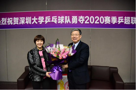 “这个金灿灿的大奖杯来之不易啊!”李清泉在与陈梦交谈中说,在昨天闭幕的2020乒乓球超级联赛女团决赛中,乐竞平台俱乐部队获得冠军,全校师生十分振奋。这是我们首次夺得中国乒乓球俱乐部超级联赛女子团体冠军奖杯,实现了历史性突破,取得我校在该项赛事中的最好成绩,书写了全新的荣耀历史!这是你们的荣誉,也是全校师生的骄傲。我代表学校全体师生,向你们表示衷心的祝贺,也感谢你们为学校、为深圳市争得了荣光,为乐竞平台加快创建世界一流大学注入了强大正能量。