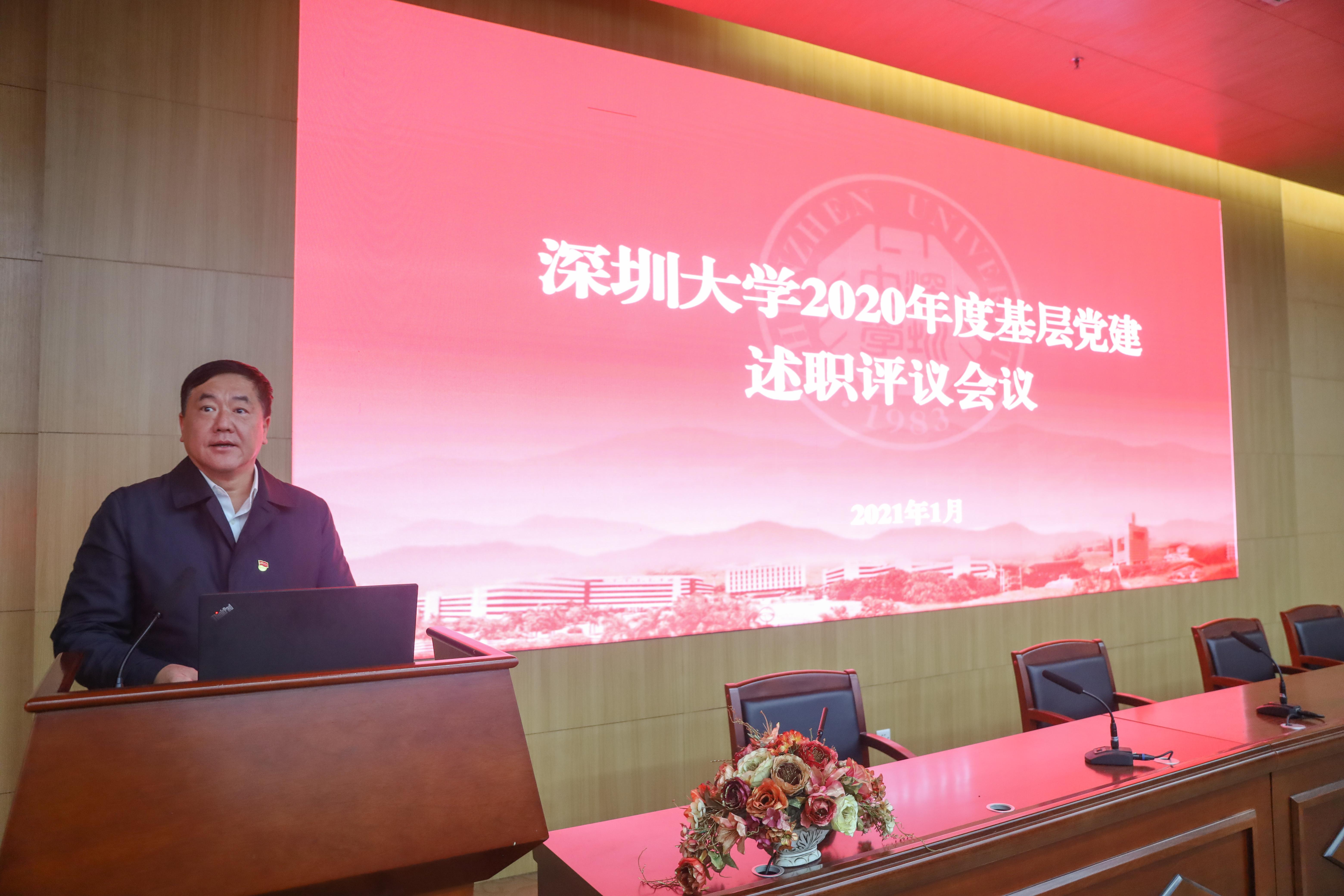 根据《广东省加强党的基层组织建设三年行动计划(2018-2020年)》的要求,基层党组织书记向校党委述职,会议述职实现3年一轮全覆盖。此次会议采取现场述职和书面述职相结合的方式,师范学院党委、艺术学部党委、马克思主义学院党委、外国语学院党委、传播学院党委、数学与统计学院党委、物理与光电工程学院党委、生命与海洋科学学院党委、机电与控制工程学院党委、材料学院党委、电子与信息工程学院党委、计算机与软件学院党委、建筑与城市规划学院党委、土木与交通工程学院党委、高等研究院党总支、体育部党总支、机关党委、后勤部党总支、资产经营有限公司党委、总医院党委、平湖医院党委共21个单位的书记进行现场述职;其他基层党委(总支)书记书面述职。听取现场述职后,参会人员通过填写测评表并投票的方式对基层党委(总支)书记抓党建情况进行评议。