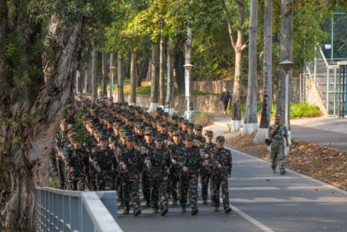 我校此次军训紧扣《普通高等学校军事课教学大纲》,同时严格执行疫情防控有关要求,军训内容涵盖时事政策教育、国防安全教育、消防教育、急救技能培训、战备基础、格斗基础、特色科目等诸多方面,通过拓展训练、主题教育、观影、汇演等形式多样的活动,丰富学生们的军训生活,增强学生们的凝聚力和集体荣誉感。