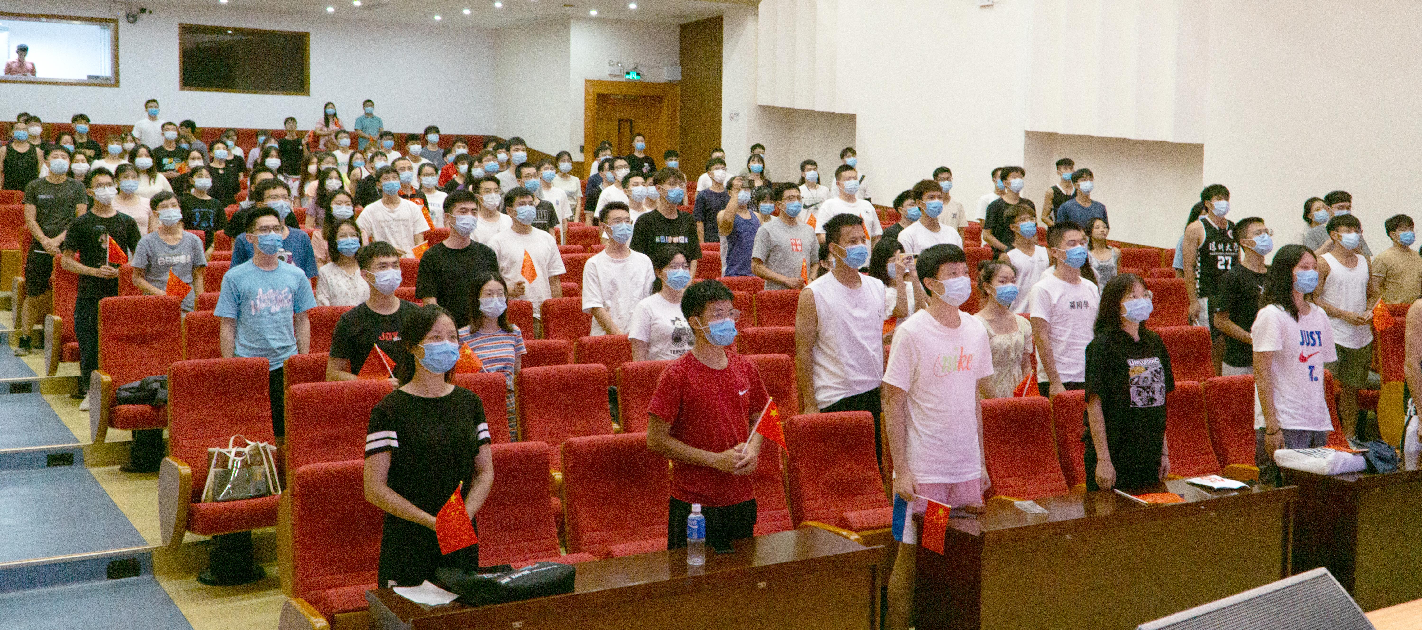 比赛结束后,会议厅内师生共同唱响《我和我的祖国》,场面感人。