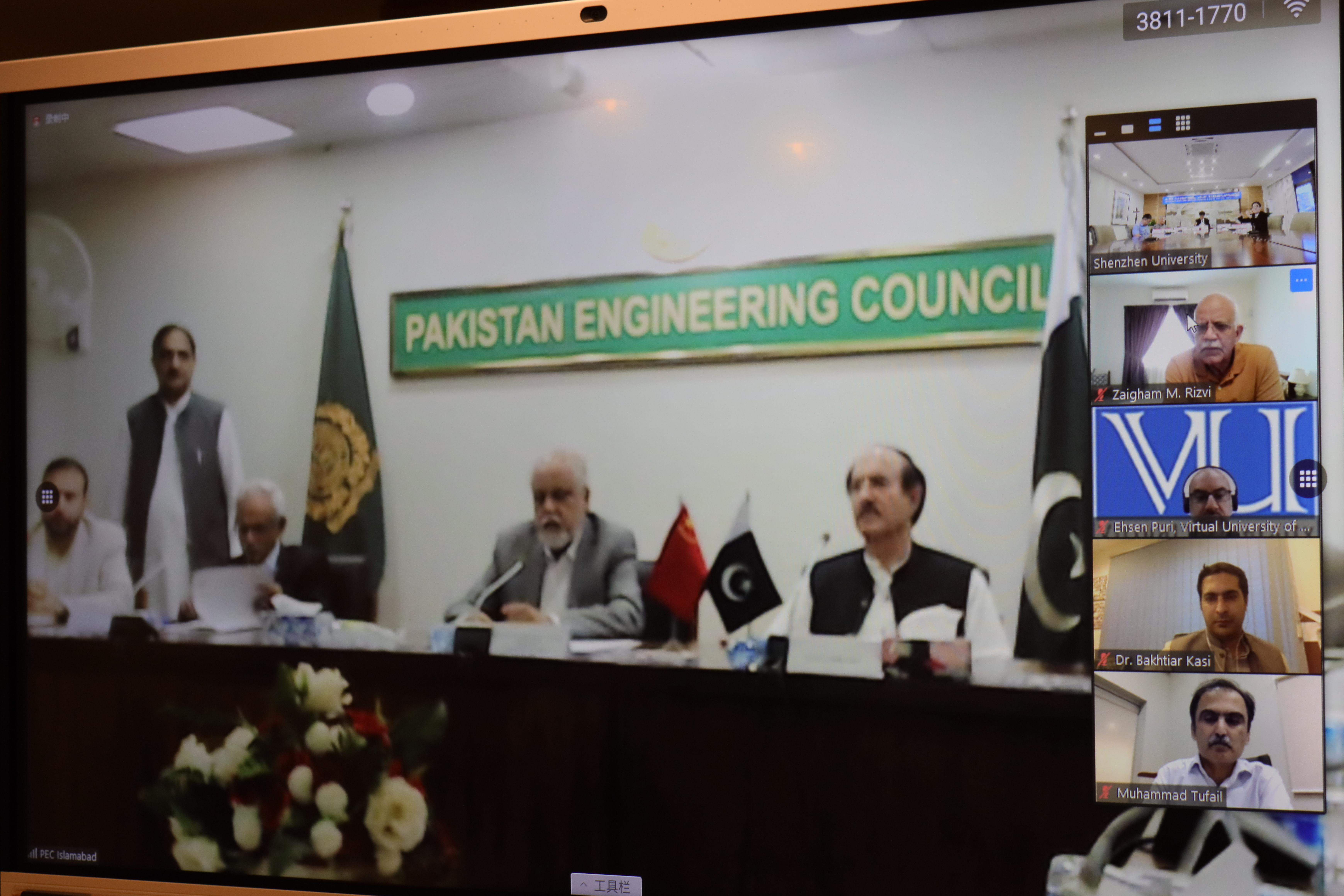 巴基斯坦国立科学技术大学、巴基斯坦国际伊斯兰大学、巴基斯坦拉合尔管理科学大学、巴基斯坦白沙瓦工程与技术大学、巴基斯坦俾路支信息工程大学、巴基斯坦喀喇昆仑国际大学等学校的副校长,特里奥卡风险投资公司首席执行官等巴方代表线上参会。