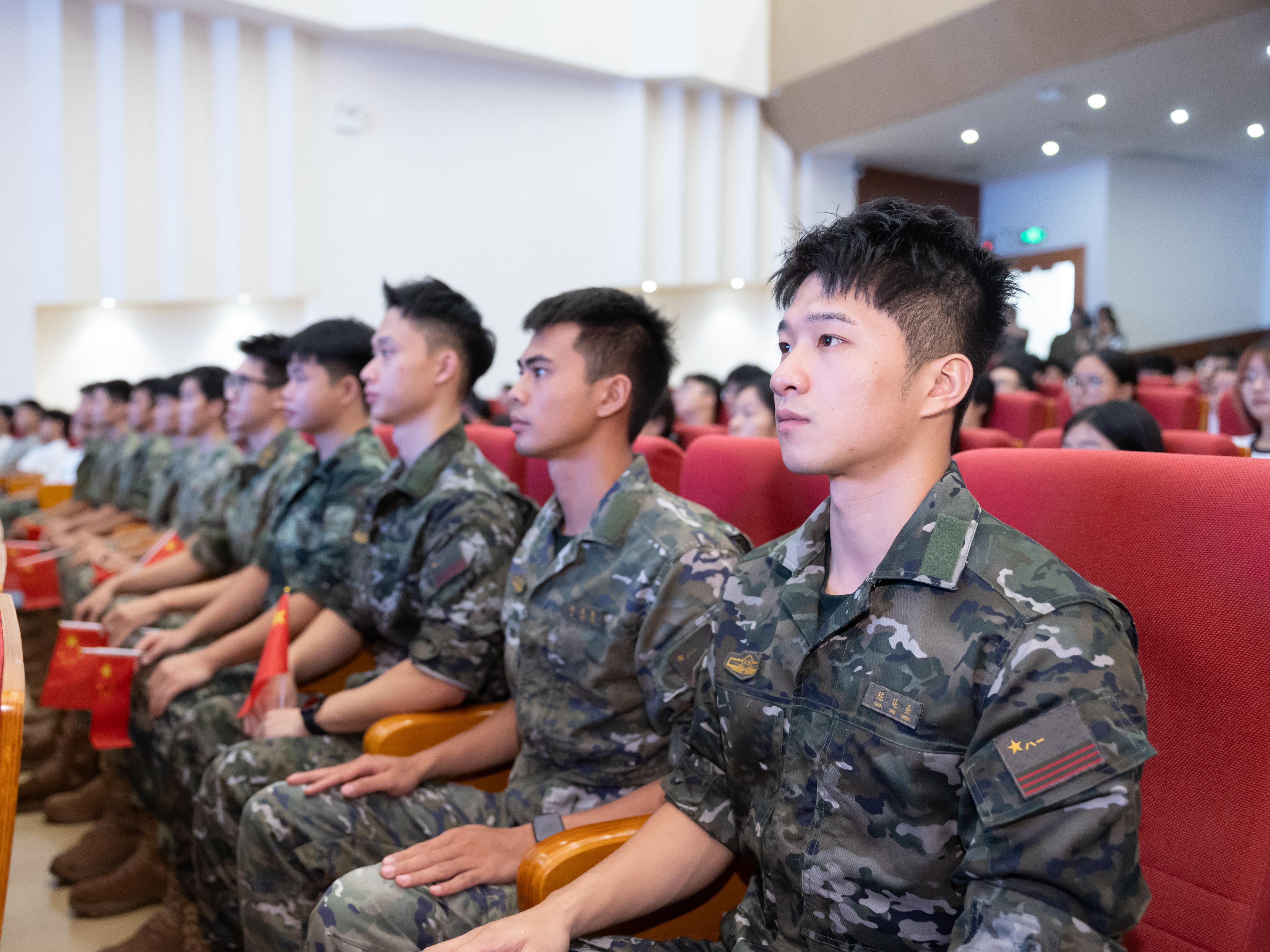 经济学院会计学专业本科生、退伍大学生李秋杏则回想起了自己的军旅生涯。她表示,当兵锤炼了她的意志,将忠诚、奉献、热血、牺牲刻进了她的骨子里。她引用陈祥榕英雄曾写下的战斗口号“清澈的爱,只为中国”,掷地有声地说:“无论何时,无论何地,若有战,召必回,我们永远是个兵!”