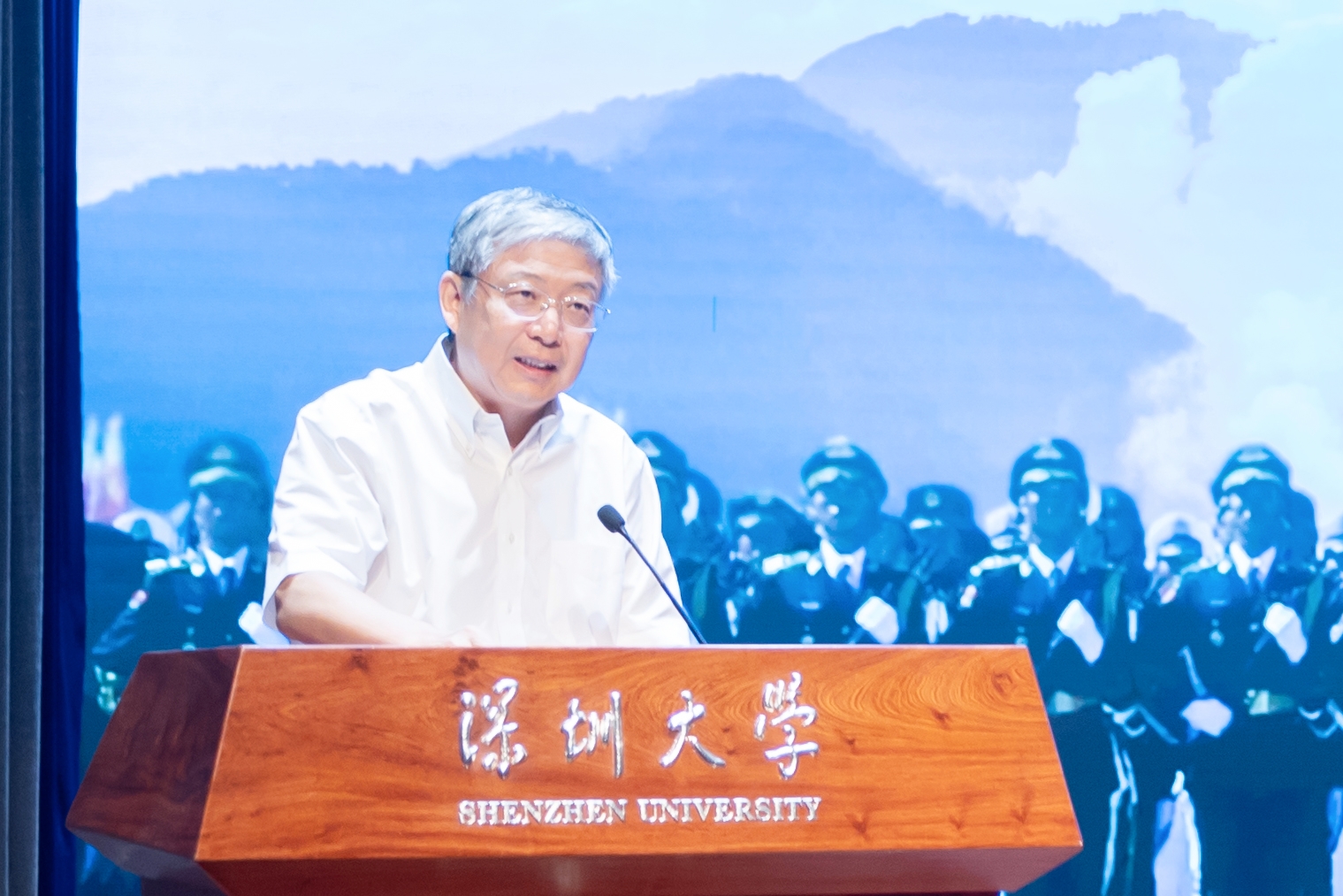 李清泉特别提到,深大毕业生、维吾尔族女孩地阿拉·阿买江是此次阅兵的民兵方队中的一员,以她为代表的深大青年们展现了深大学子的风采和担当,我们为每一位投身国防、奉献青春的深大人点赞。李清泉对身处新时代新征程的莘莘学子提出殷殷嘱托。一是根植家国情怀,树立远大理想。他以我国第一款自主研制的第三代战斗机歼-10的研发历程和试飞员雷强的感人承诺鼓励深大学子,新时代的大学生应当把个人远大理想融入民族复兴征程,在求学路上踏实奋进,在成长途中肩担责任,跑好属于我们这代人的“接力棒”。二是明确奋斗目标,做好成长规划。李清泉说,国家有宏伟蓝图,学校也有清晰规划,同学们也要绘就属于自己的“成长路线图”,做好大学与人生规划,做国家所需、自己喜爱擅长之事。三是努力付诸实践,创造精彩人生。他勉励学子成为“有根的人”“敢闯的人”“有光的人”,把个人理想扎在民族复兴的土壤里,在奋斗中敢挑战“卡脖子”难题,在实践中敢打破“不可能”,在专业领域做到“极致”,让世界看到中国青年的力量。