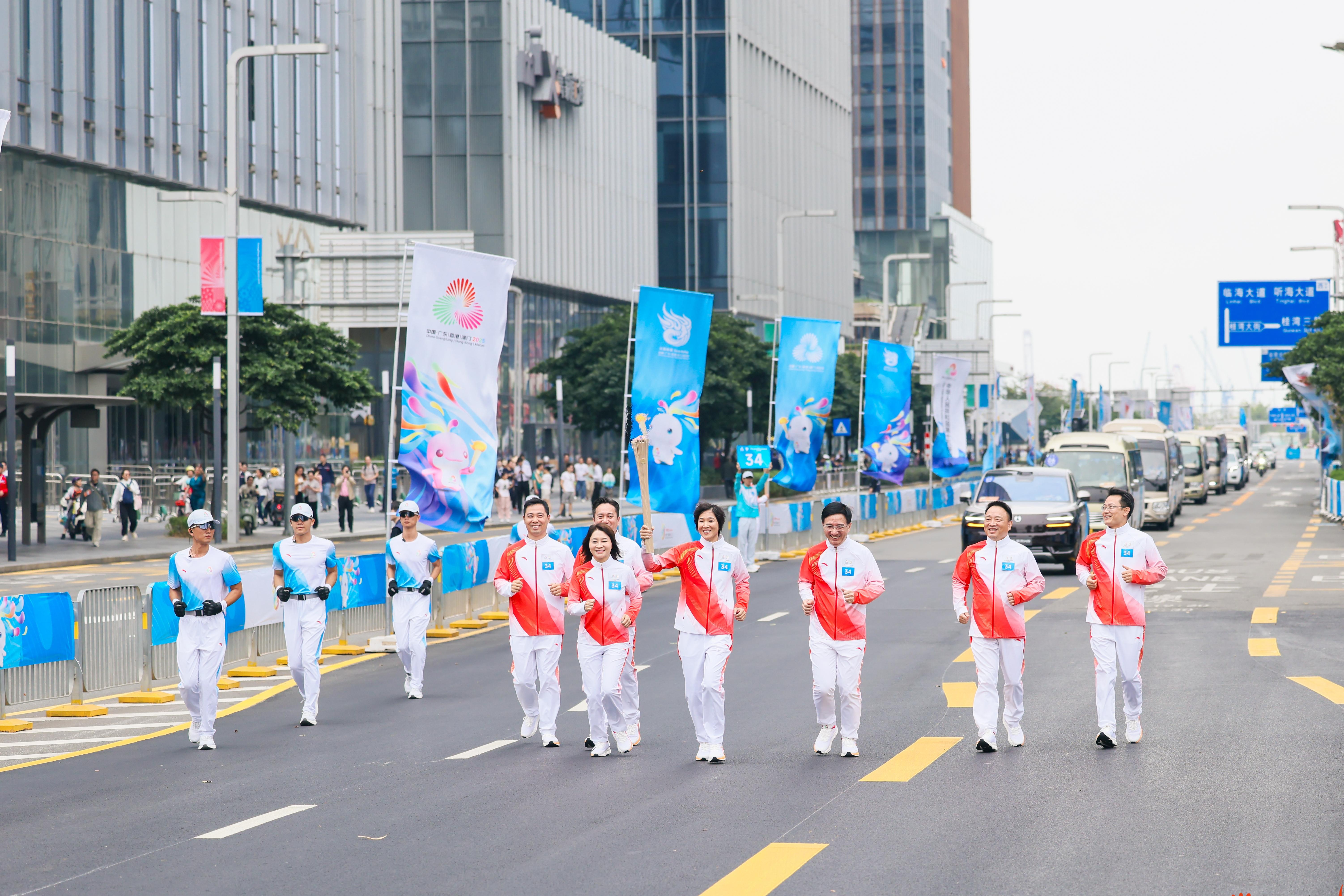 十五运会深圳赛区火炬传递活动在莲花山公园启动,于前海国际会议中心收火,全程展现了深圳“开放之城、科技之城、创新之城”的发展历程与城市特色。路线采用“三站联程・山海连城”的创新设计,全长45公里,巧妙呼应深圳经济特区45周年的发展历程。传递过程以“改革之路·勇”“开放之路·闯”“创新之路·融”三大主题层层展开。毛军发、李秋实所在的志愿者火炬手方阵均在第三段“创新之路·融”主题部分进行火炬传递,这正与乐竞平台的基因不谋而合——创新,是深大与生俱来的血脉,也是我们面向未来的誓言。