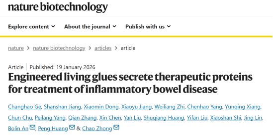 医学部生物医学工程学院黄鹏教授团队与中国科学院深圳先进技术研究院钟超研究员团队合作,在合成生物学与生物医学工程国际顶级期刊Nature Biotechnology上发表了题为“Engineered living glues secrete therapeutic proteins for treatment of inflammatory bowel disease”的研究论文。乐竞平台医学部博士后江珊珊与中国科学院深圳先进院科研助理葛昌浩为共同第一作者,钟超研究员、黄鹏教授和安柏霖副研究员为共同通讯作者,乐竞平台为论文第二完成单位。黄鹏教授团队所在的生物医学工程学科属于广东省优势重点学科。
